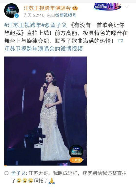 为的即是拿孟姐的这个走调来博收视率。也确实,孟子义的这段舞台,把跨大除夜江苏卫视的收视率给拉到了最高点。