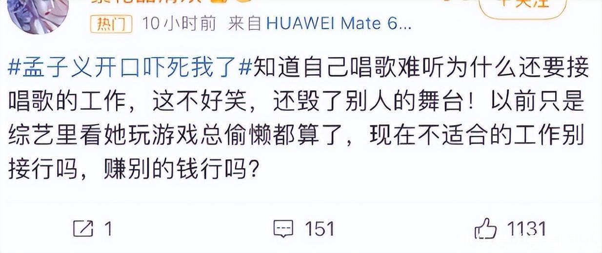 但孟姐粉丝不屈。一是认为孟子义并非专科歌手也莫得假唱,全开麦日常阐扬,并莫得错啊。