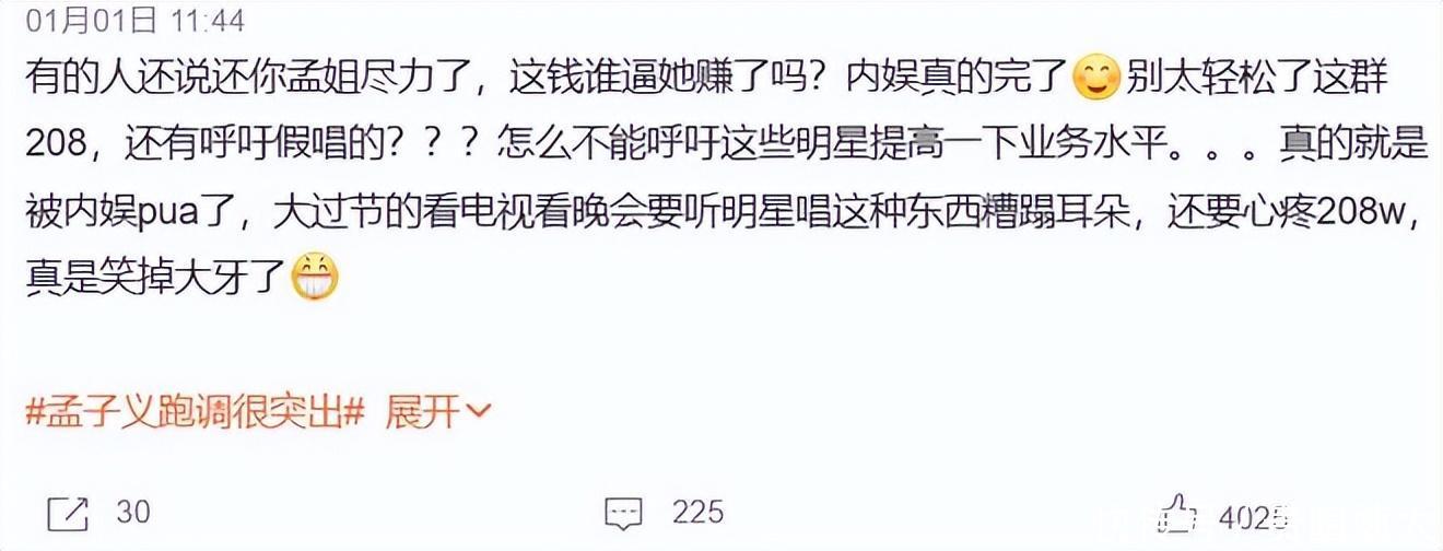 跨年晚会适度三天了,对于孟子义跑调的事儿皇冠hg8868新版点此进入,依然热度不减啊。