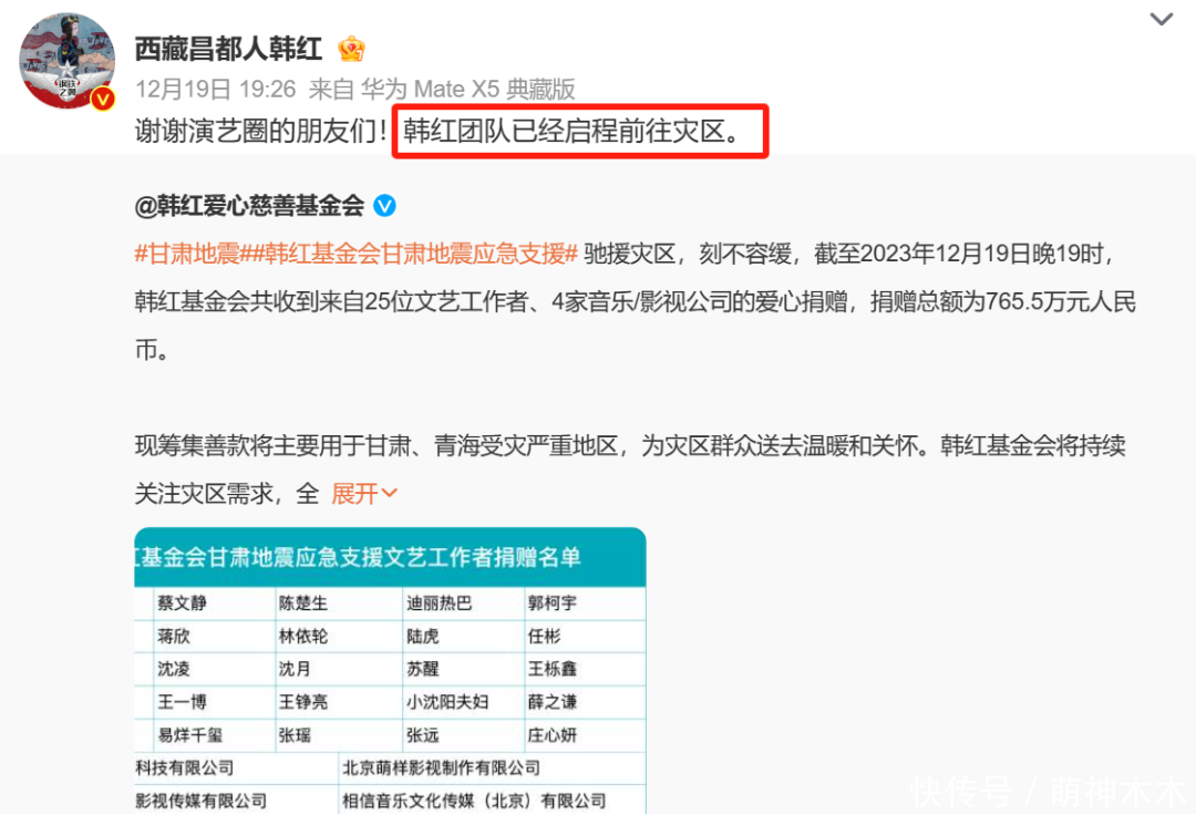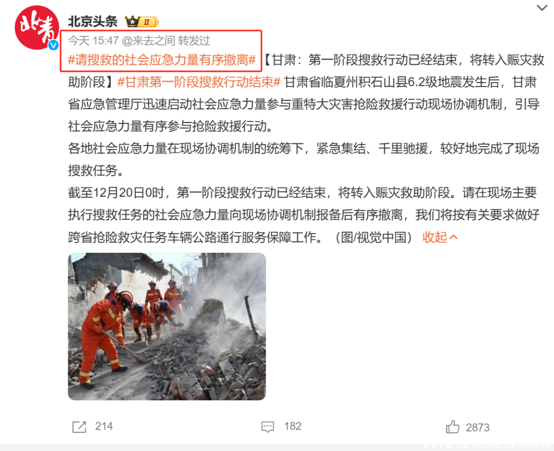 甘肃等地发生地震后,社会各界齐在积极照拂,演艺界明星也第一工夫捐款捐物。在地震发生第二天,官方晓谕第一阶段搜救行动截止,将转入赈灾维持阶段,命令社会救急力量裁撤。尔后,韩红现身灾地病院激勉争议。