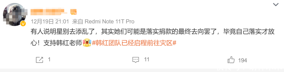 虽然,也有网友以为韩红到一线仅仅落实去处明了,不是添乱。但愿各人不要过度推断,毕竟韩红亦然出于爱心。